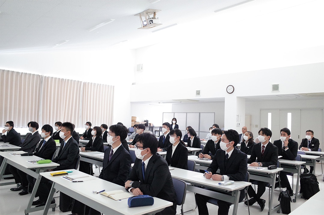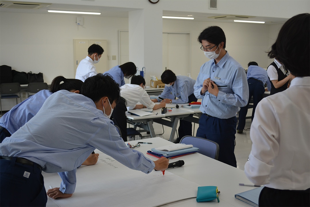 新入社員全員が顔を合わせて同じような悩みや課題を共有しながら、今後のキャリア形成についても考えていきます。
